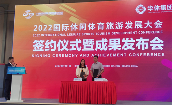2022年9月1日,jinnian金年会职业学院与华体国际文旅(北京)有限公司在首钢园举行的国际休闲体育旅游发展大会上签订了战略合作协议,强强联手,共同开启职业教育校企合作新篇章。